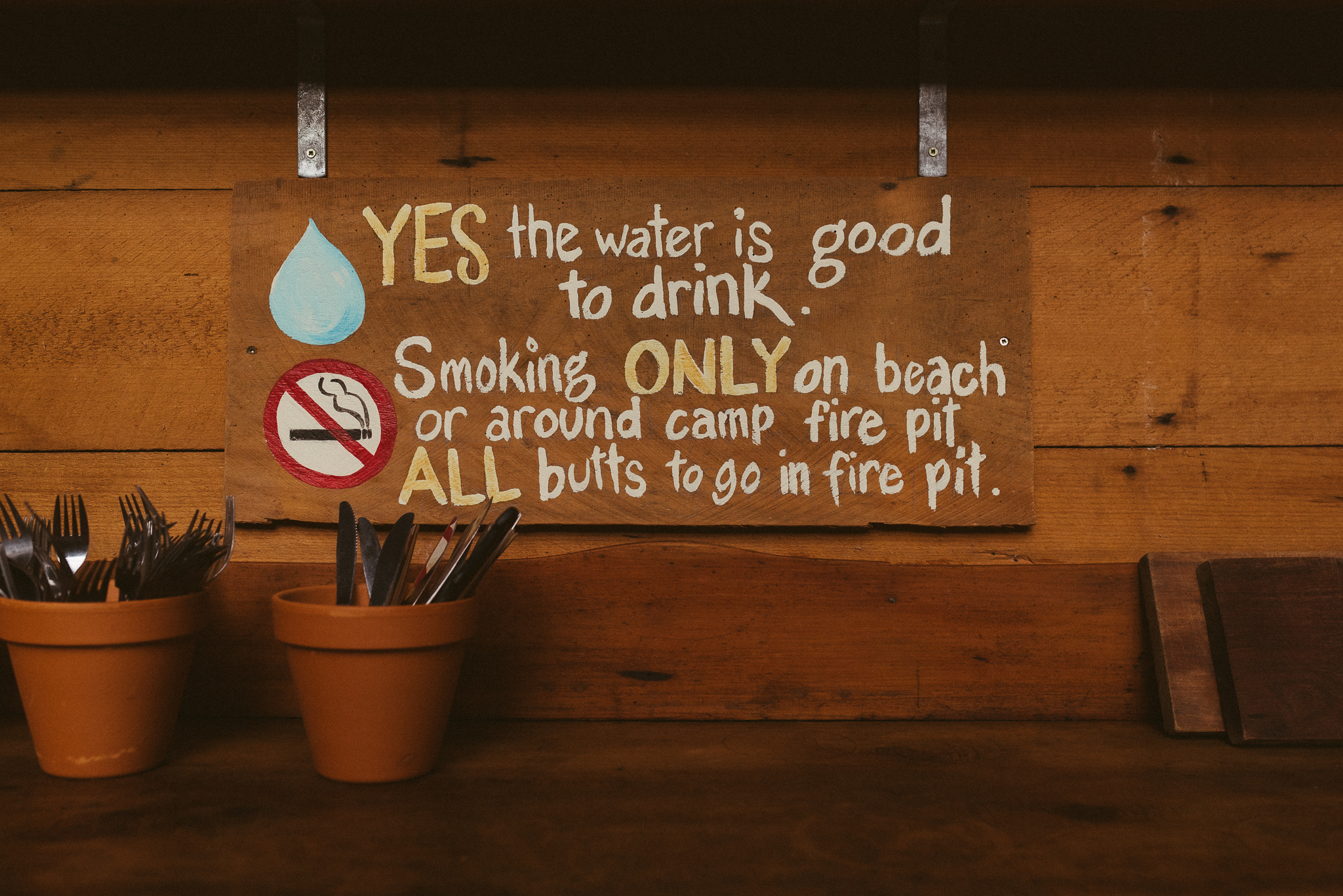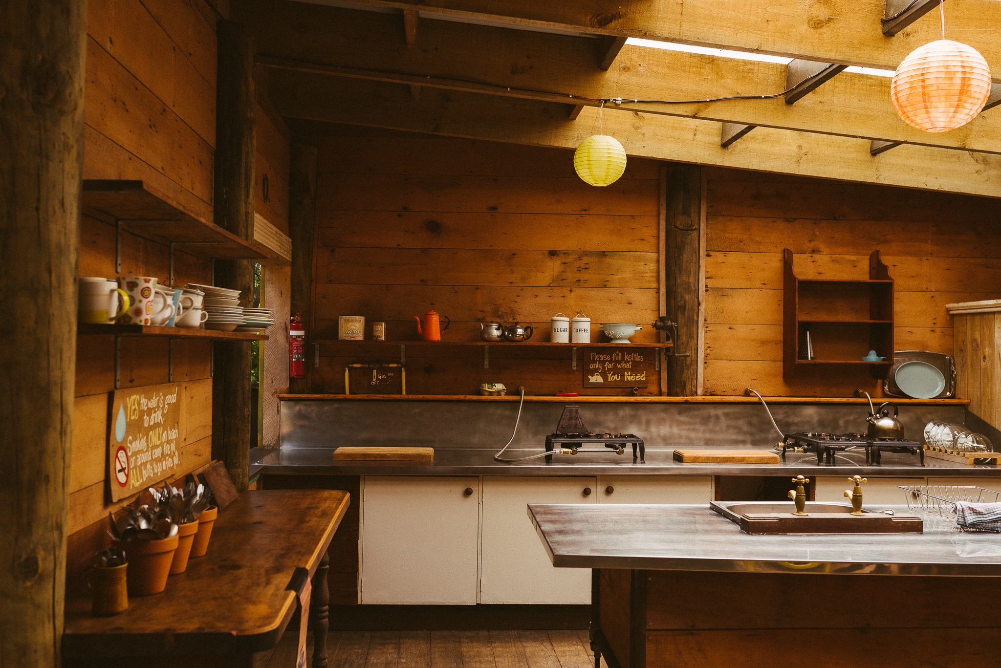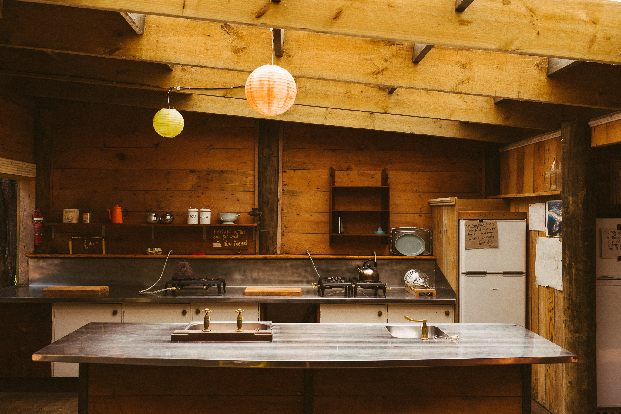 - Kitchen – a spacious and clean camp kitchen complete with cooktop stoves, fridge/freezer, pots, pans, cutlery and crockery. Water here is good to drink (no need to buy water and all the plastic packaging that goes with it).